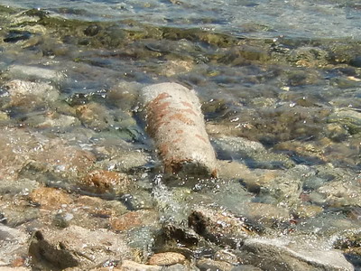 Fundamentsteine und aus Ton kleine Fußbodenelemente es liegen auch Säulen im Wasser