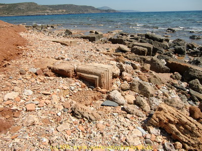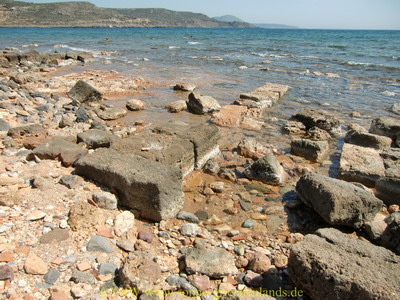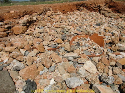 Zwei Fußböden übereinander und Mauerreste Reste von großen Amphoren, wahrscheinlich zum aufbewahren von Getreide Behauender Kalksandstein für Fundamente und Wände
