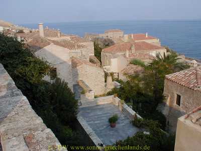 Bick auf die Alte Oberstadt und die Unterstadt von Monemvasia