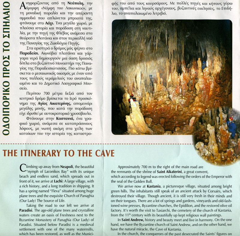 Um zur Höhle zu gelangen, kann man zwischen zwei Straßen wählen. Von beiden Straßen fährt man von Neapoli aus, über den Berg.