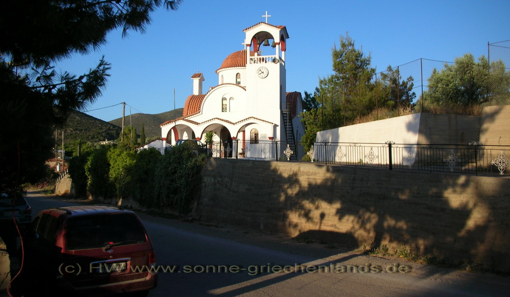 Die Kirche von Talanda direkt an der Hauptstraße. In der Nähe geht die Straße ab zur Wassermühle.
